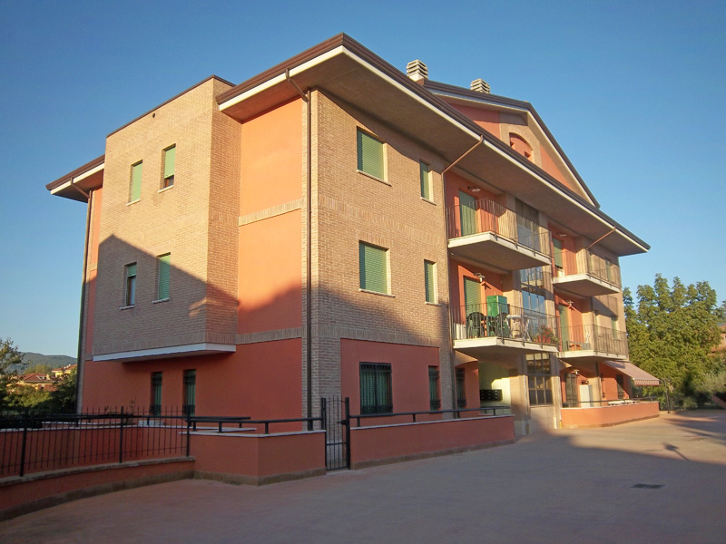 Fabbricato "D" composto da n° 8 unità abitative. Con accesso da un grande scala centrale coperta con struttura in legno di rovere e pianellato. L’unità abitative, in vendita, si sviluppano su un unico livello al piano secondo sottotetto con vista mozzafiato su la vallata di Assisi e Perugia. Tutti dispongono da garage privato.