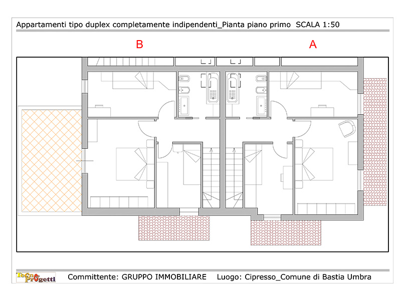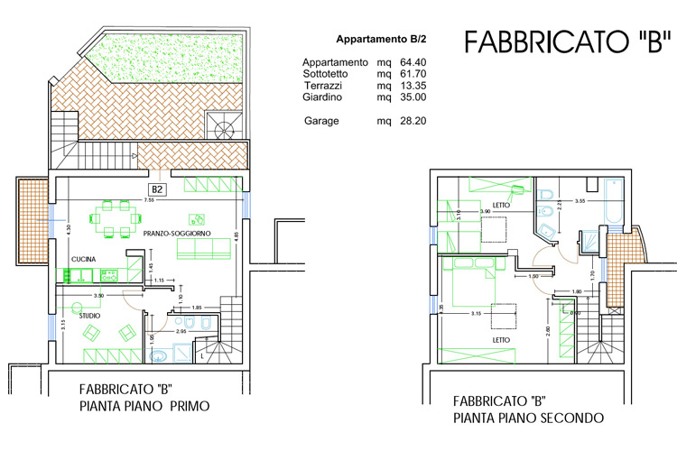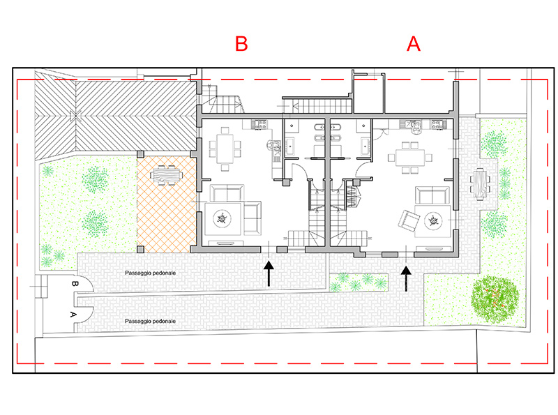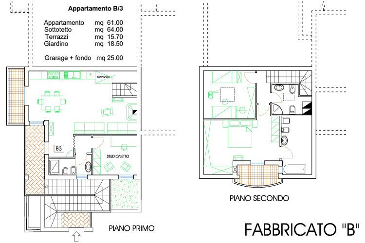 Fabbricato "B" composto da n° 6 unità abitative. Tutte con accesso indipendente dall’esterno, piccolo giardino ad uso esclusivo. L’unità abitative, in vendita, si sviluppano su due livelli: piano primo e piano sottotetto. Tutte dispongono da garage privato.