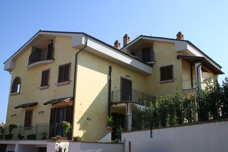 Tipologie costruttive del fabbricato: facciate intonacate e tinteggiatura ad effetto anticato, tutte le aperture esterne hanno delle riquadrate con mattoni fatti a mano, soglie delle finestre sono in pietra di travertino bianco, il manto di copertura con tegola portoghese anticata.