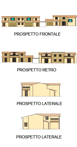 Il fabbricato “trifamiliare”e composto da due corpi di fabbrica distinti, colegati solo da un pergolato in legno, ogni unità abitativa si sviluppa su due livelli: piano terra e piano sottotetto. Al piano terra, nella parte a valle, collegato al soggiorno, vi è un grande portico con archi a tutto sesto, mentre al piano sottotetto, sempre nella parte a valle vi è un grande terrazzo che domina la vallata.