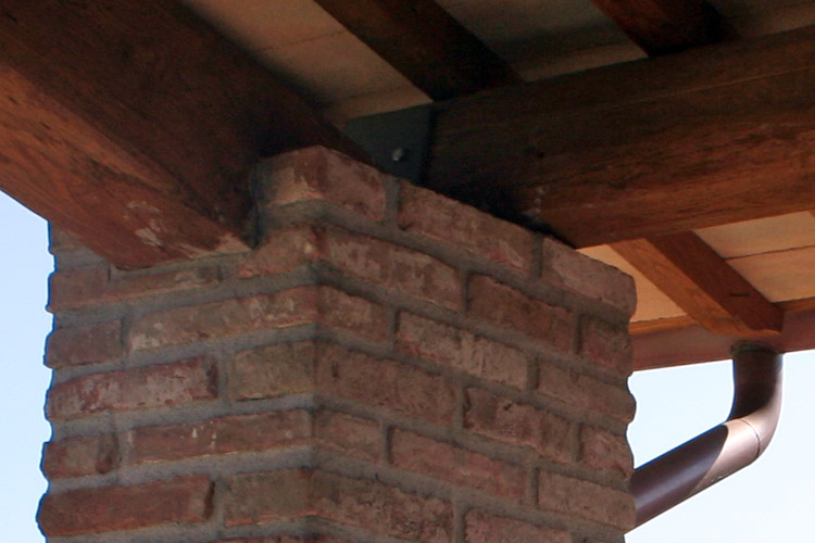 Tipologie costruttive del fabbricato: facciata; parte intonacate e tinteggiatura ad effetto anticato, e in parte rivestite con mattoncini fatti a mano, tutte le aperture esterne hanno delle riquadrate con mattoni fatti a mano, soglie delle finestre sono con elementi in cotto fatti a mano, il manto di copertura con tegola portoghese anticata.