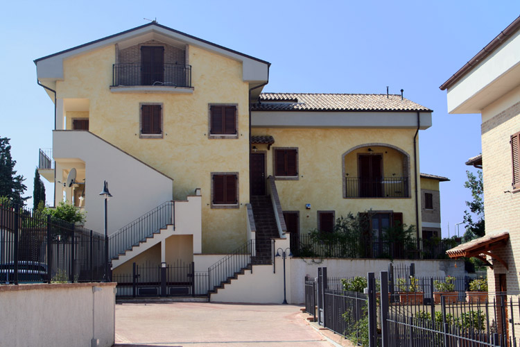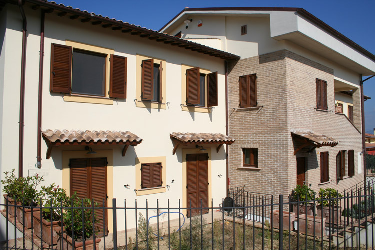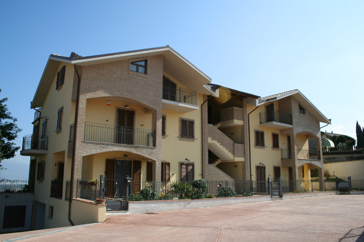 Fabbricato "D" composto da n° 8 unità abitative. Con accesso da un grande scala centrale coperta con struttura in legno di rovere e pianellato. L’unità abitative, in vendita, si sviluppano su un unico livello al piano secondo sottotetto con vista mozzafiato su la vallata di Assisi e Perugia. Tutti dispongono da garage privato.